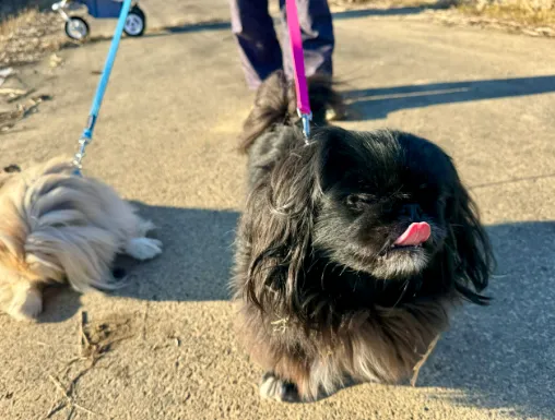毎回行動が別々なため、犬に弄ばれるだけの散歩時間。(そこに座るのやめてえぇw)