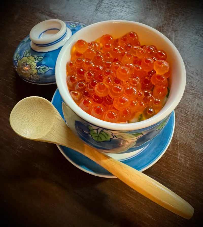 視覚(色・盛り付け)、嗅覚(香り)、聴覚(焼く音・噛む音)、触覚(器の重さ・温度)、味覚(味そのもの)を大切にしながら頂きます(*^^*)