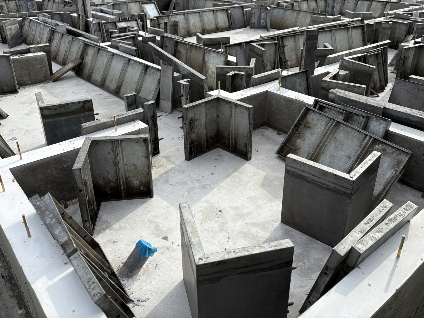基礎工事終盤に差し掛かり、現在型枠を外しているところです。