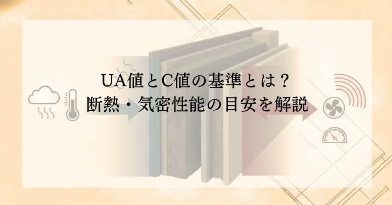 今回は、住宅の断熱性能を示すUA値と気密性能を示すC値について、その意味と基準、目安について解説しました。