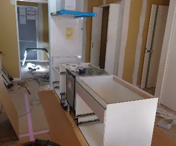 水戸市見川町の平屋新築建物(自由設計の注文住宅、ローコスト&ハイクオリティー、認定長期優良住宅、耐震等級3、コンパクトハウス)は、昨日キッチンの施工が行われました。