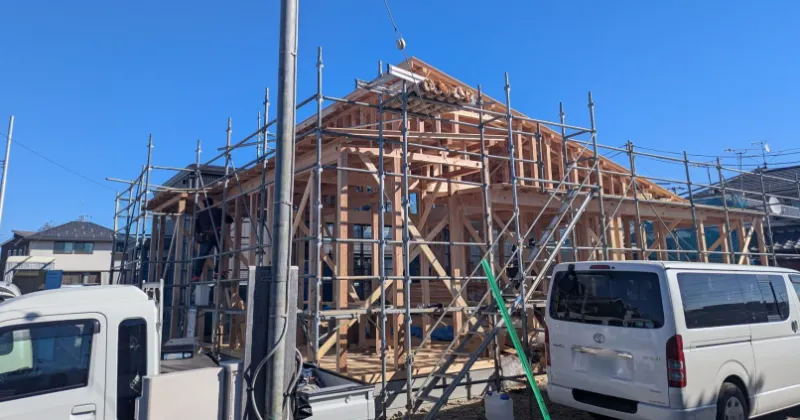 日立市鮎川町に流行りの平屋のモデルハウスを建築中!