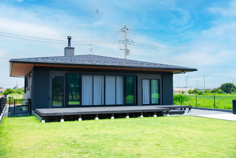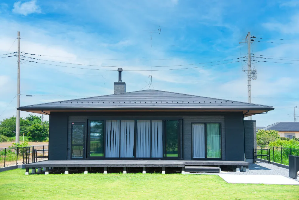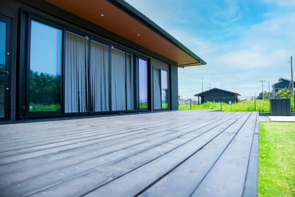 ウッドデッキでくつろぐ、リゾート感のある住まいの2階建て3LDK