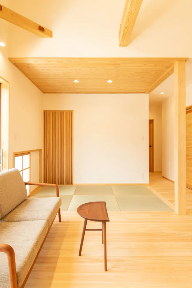 木と畳の心地よさが満ちるこの住まいは、家族が自然体で穏やかに過ごせる、あたたかい空間です。