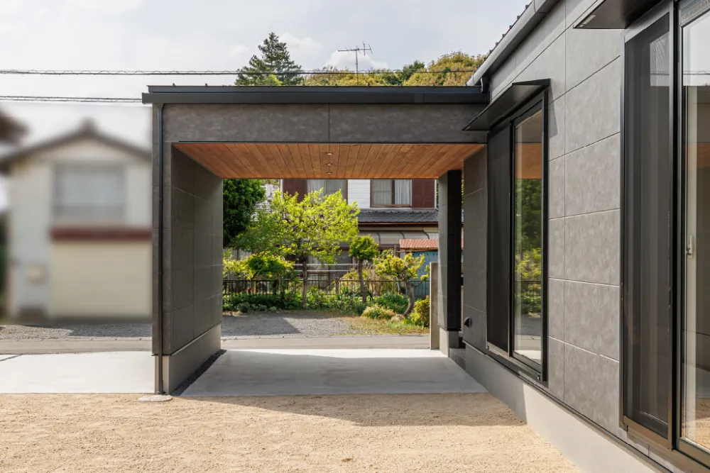 ◆屋根のある動線が、毎日をもっと快適に 車から玄関までをカバーする屋根付きのポーチが、どんな天候でも安心できる、暮らしの出入口に。 外とのつながりを保ちつつ、実用性に優れた“使える外空間”として活躍します。 生活動線の一部として、玄関まわりに、ちょうどいいゆとりをくれる場所です。