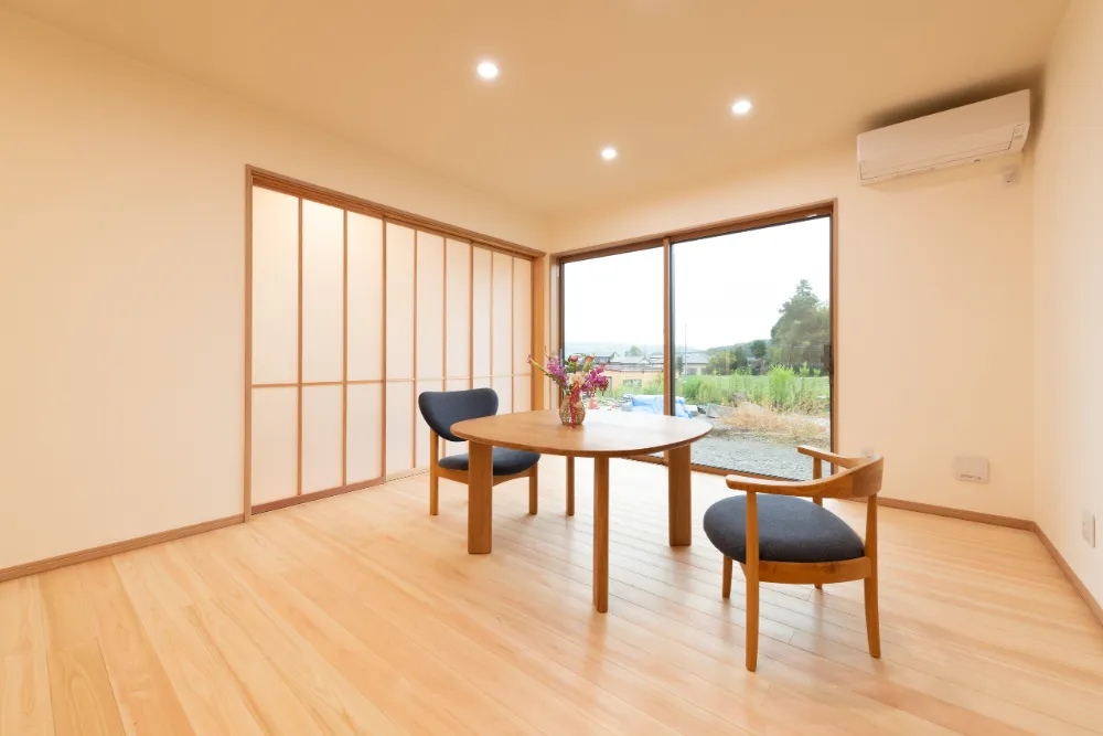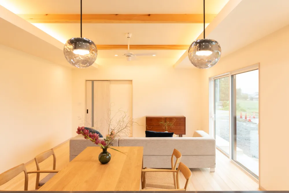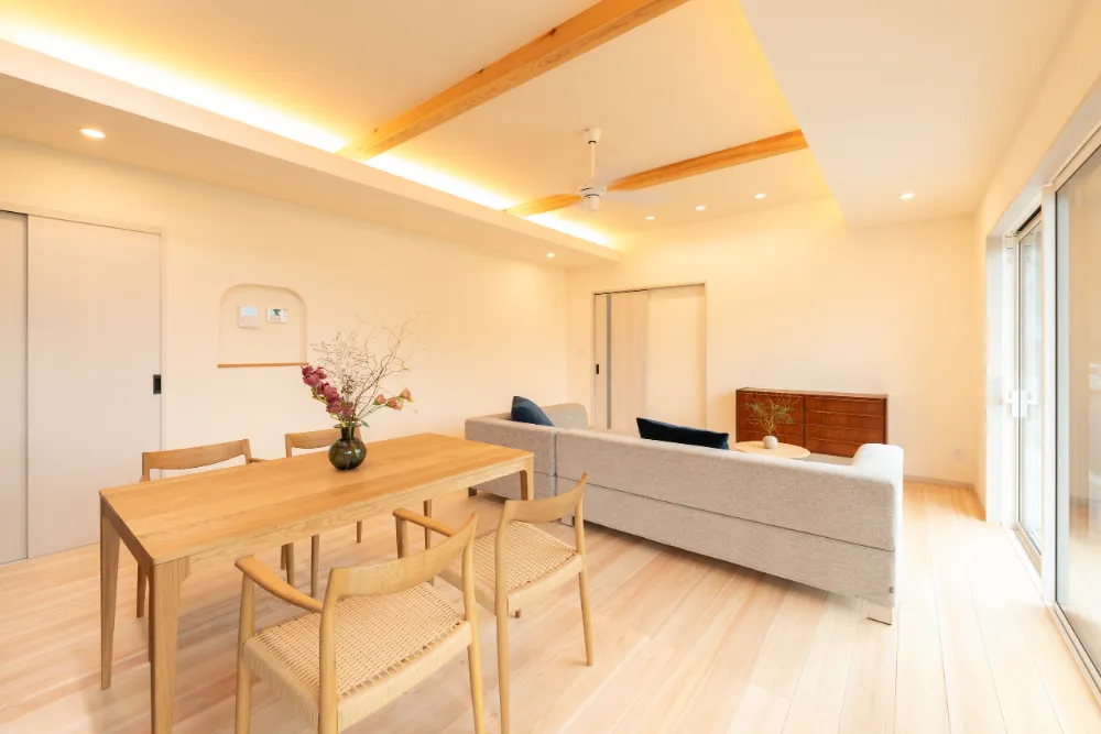 親世帯は、落ち着きと安心を大切にした空間構成。 リビングと和室が緩やかにつながり、日々を穏やかに過ごせる住まいです。
