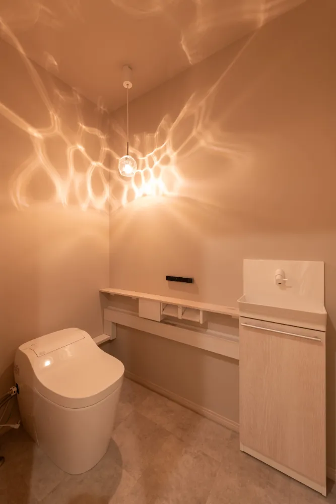キッチンからパントリー、洗面・脱衣室へとつながる動線を確保し、家事のしやすさにも配慮しています。 日々の暮らしが自然と整う、使い勝手のよい間取りです。 家族が自然と集まり、何気ない会話が重なっていく、あたたかな場所となりました