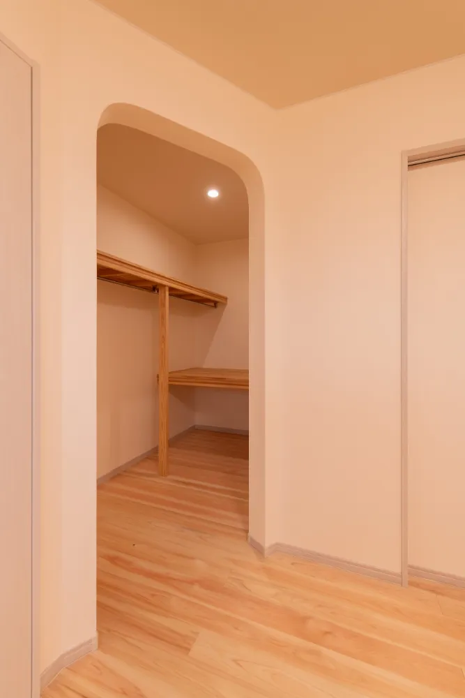 各所に設けた収納やクローゼットが、住まい全体をすっきりと保ちます。 世帯ごとのプライバシーと、家族としてのつながり。 その両方を大切にした設計だからこそ、無理なく、自然体で暮らせる二世帯住宅となりました。 それぞれの時間を大切にしながら、必要なときはすぐ寄り添える距離感。 広がる景色とともに、家族の未来をやさしく見守る住まいが完成しました。