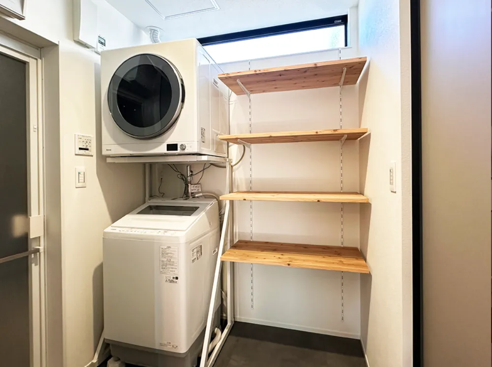 無垢材のやさしさと、割石の荒々しさ。 異なる質感をあえて重ねることで、空間に深みと存在感を生み出しています。 コンクリートブロックのキッチンや、素材感を活かしたディテールは、使いやすさ以上に【佇まいの美しさ】を意識して設計されています。 日常のためだけではなく、自分の感性を楽しむための住まいです。