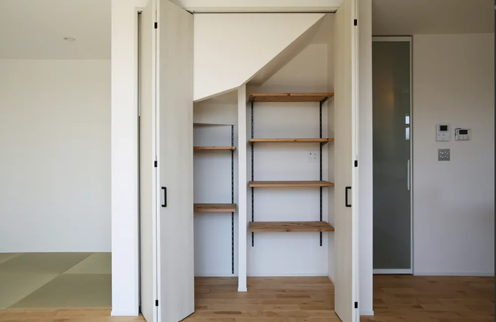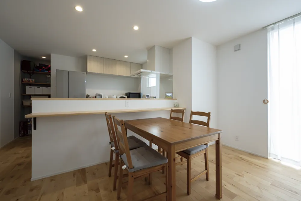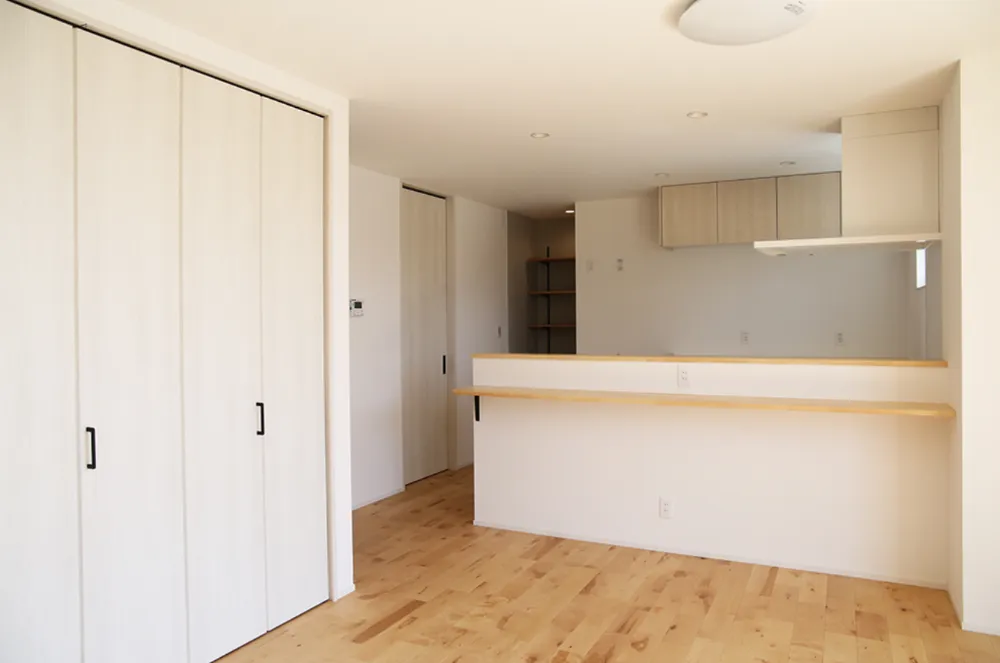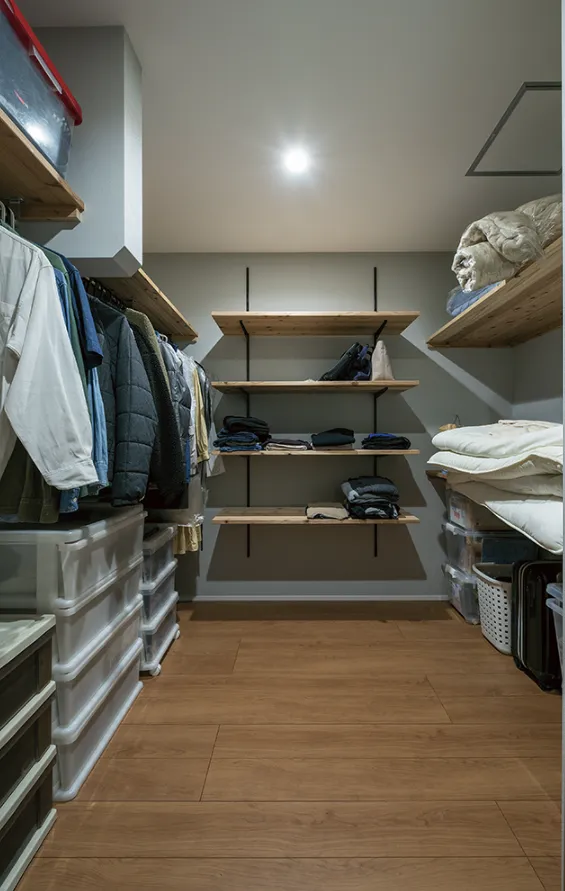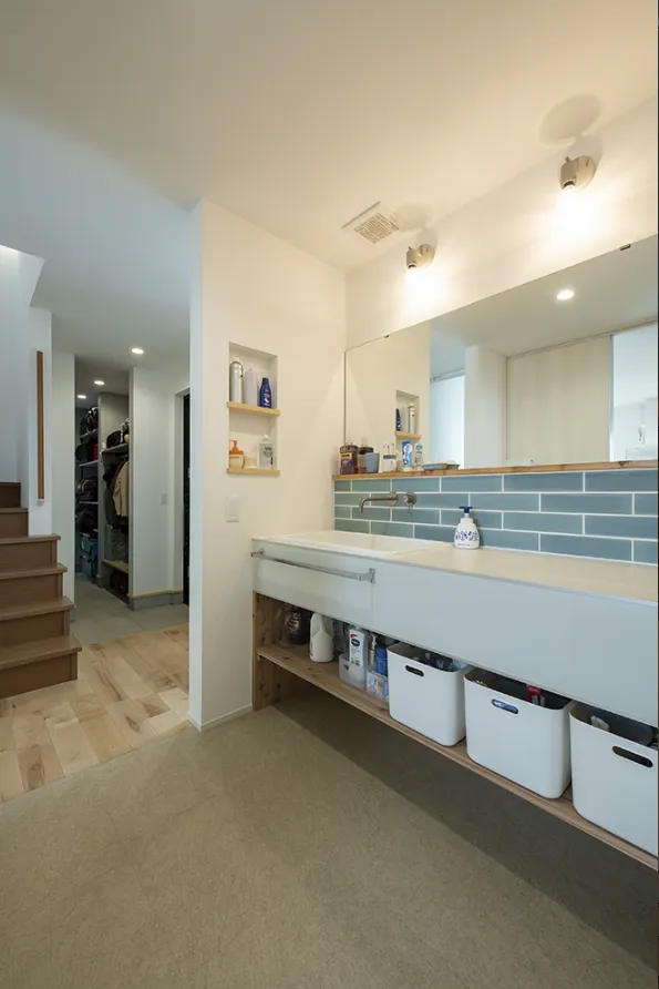 インナーガレージから玄関へと直結する動線により、 天候に左右されることなくスムーズな出入りが可能です。 電動シャッターを採用することで、使い勝手とセキュリティ性を両立し、愛車をスマートに守ります。 ガレージを【特別な場所】として切り離すのではなく、暮らしの延長線上にある存在として設計することで、日常の中に自然と趣味が溶け込む空間となりました。