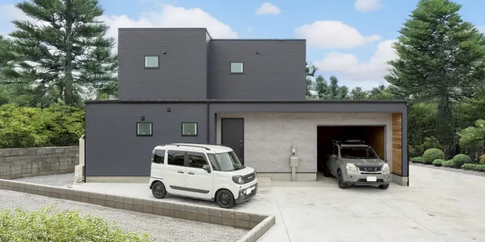 ただ車を保管するだけの場所ではなく、 愛車と向き合い、時間を過ごすための空間として設計されたインナーガレージ。 OSBのラフな質感と、レッドシダーの深い木目。 無骨な素材同士を掛け合わせることで、装飾に頼らない“かっこよさ”を表現しています。 機能性だけではなく、そこに居たくなる空気感。 大人の趣味を受け止めるための、静かで力強い空間です。