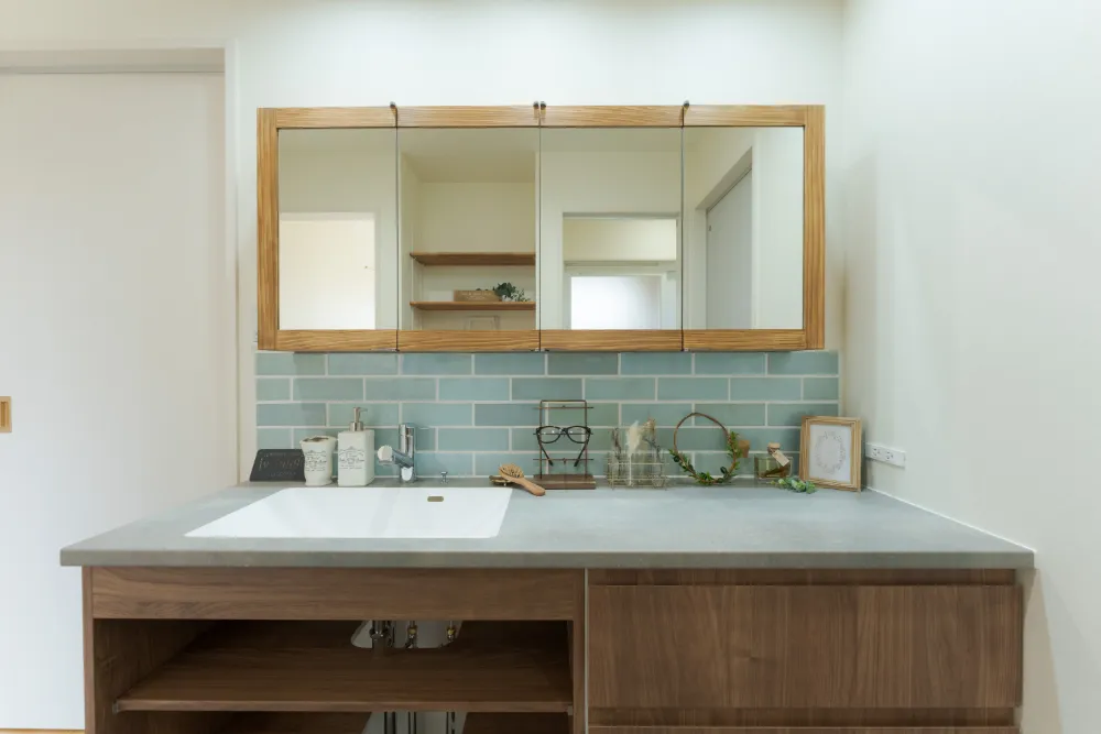 帰宅後すぐの手洗いや、朝の身支度から外出までもスムーズに行える動線です。