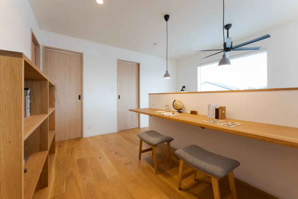 家族で使える造作本棚のある2階フリースペース
