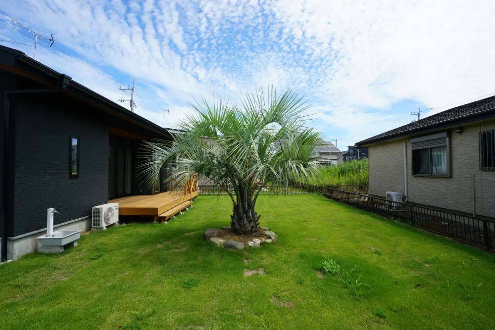 ココスヤシが映える、リゾート感あふれるお庭!